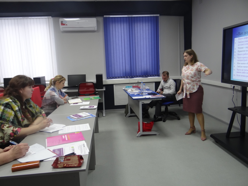 Семинар состоял из шести блоков и был наполнен разминками, тренингами и упражнениями, для выполнения которых приходилось работать и в группах, и в парах, и индивидуально. Усвоение материала происходило через практику. Самые сложные концепции, вопросы и проблемы объяснялись максимально доступно. Интересными стали практикумы «Выполнение и анализ заданий исследований PISA–2009», «Определение конкретного читательского умения, проверяемого заданием», «Метапредметная составляющая в заданиях ОГЭ и ЕГЭ по учебным предметам», «Мониторинг достижения результатов в области читательской грамотности». В ходе работы в группах учителя выстроили траекторию работы по повышению эффективности обучения через использование методики смыслового чтения.